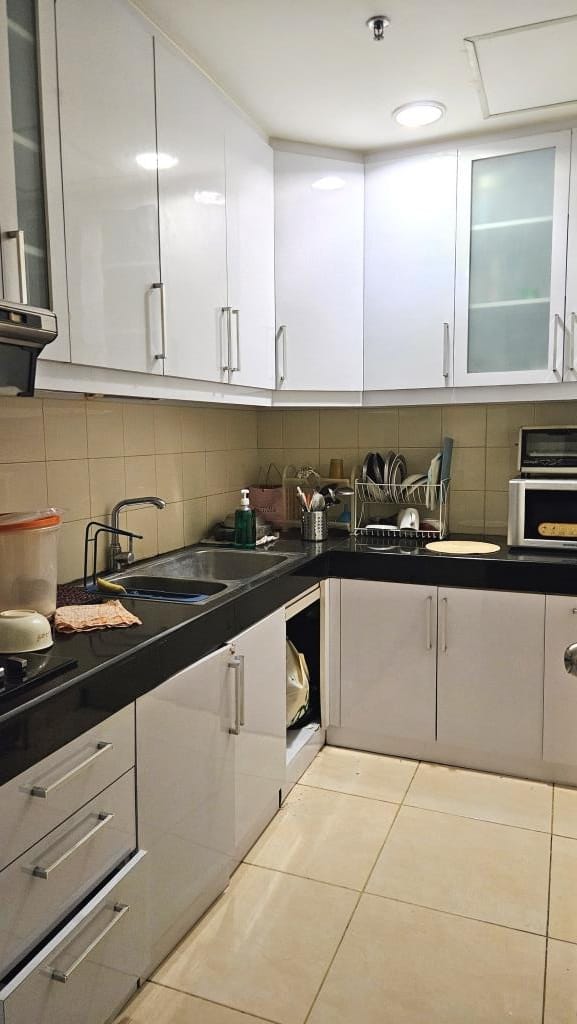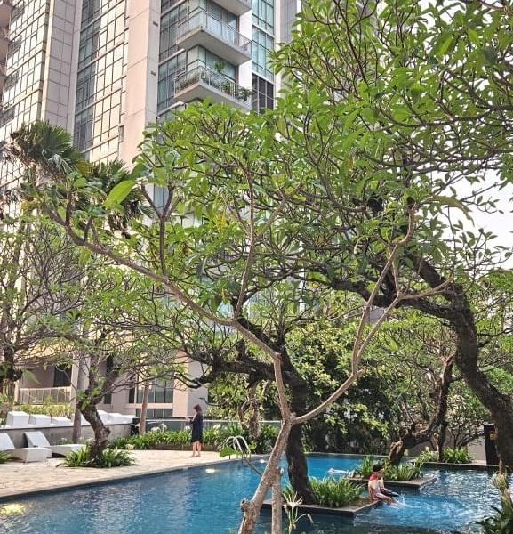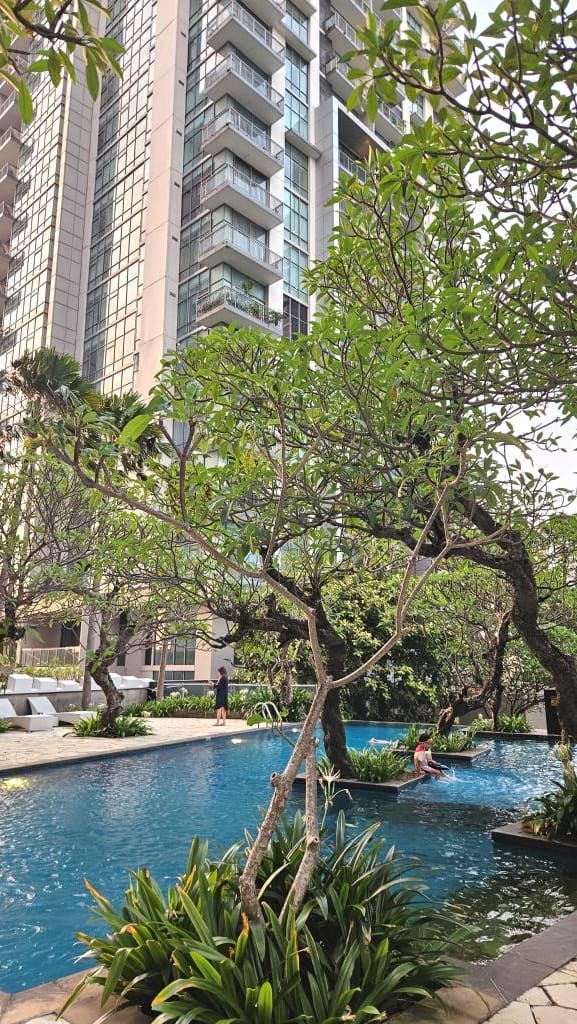 Kolam renang (indoor & outdoor), gym modern, lapangan tenis, taman bermain anak, sauna, jogging track, serta keamanan 24 jam dengan kartu akses. Unitnya dilengkapi lantai marmer, dapur lengkap, dan balkon