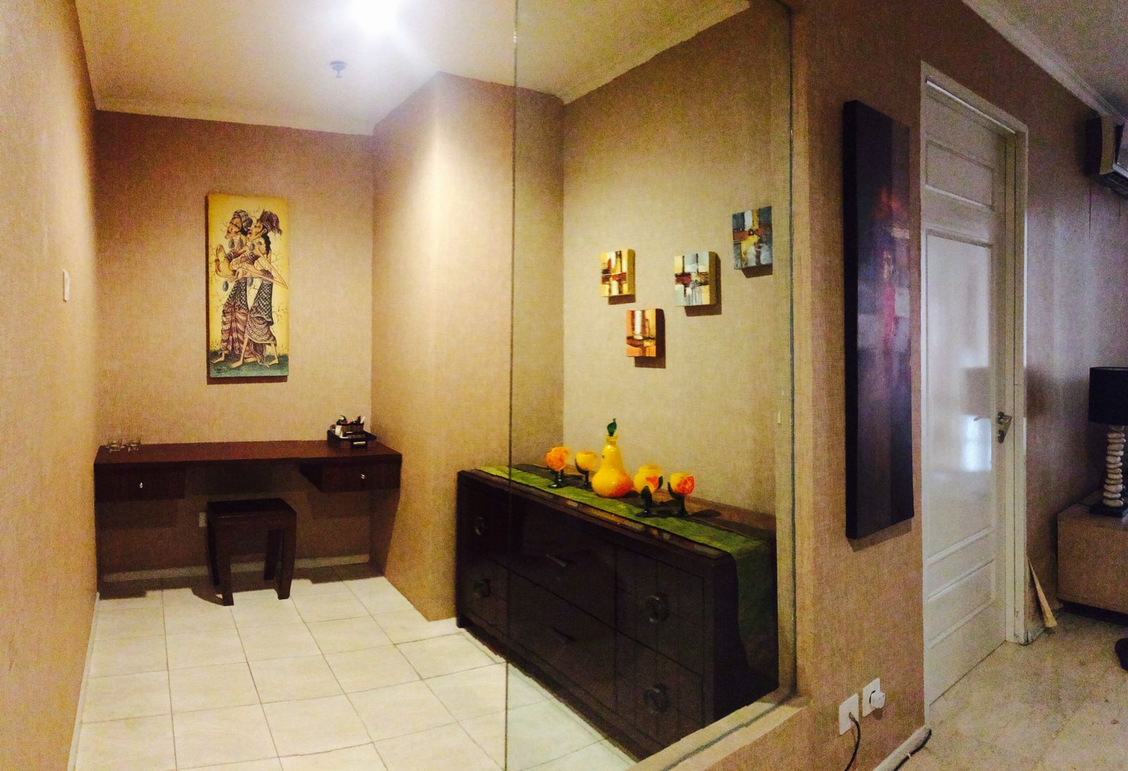 Kolam renang outdoor, pusat kebugaran (gym), lapangan tenis, keamanan 24 jam dengan kartu akses, tempat bermain anak, binatu, dan akses langsung ke Mall fX serta restoran